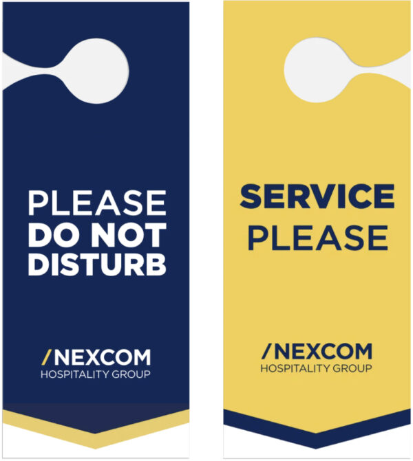 Door hanger, two sided, do not disturb / please service with NHG logo 100/cs